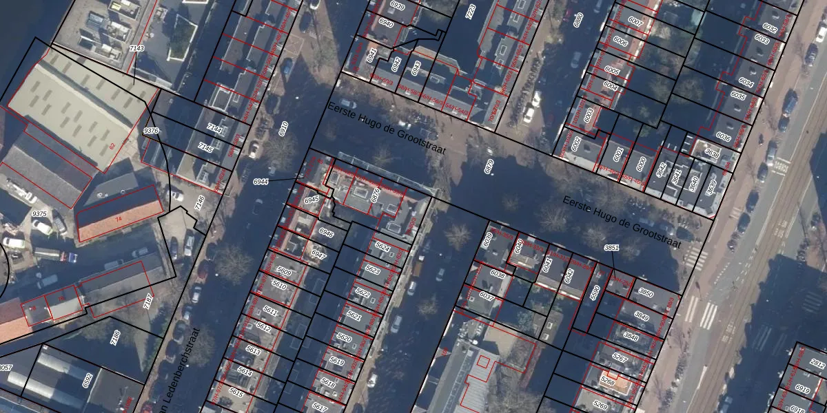 Het perceel waarop het adres ligt is ASD13-Q-6876. De afkorting 'ASD13' staat voor kadastrale gemeente Amsterdam. Het perceel is kleiner dan gemiddeld in Amsterdam. Het perceel is 290 m² groot, terwijl het gemiddelde ligt op 393,94 m². De grootste perceeloppervlakte in de kadastrale gemeente is 6,2 ha. De kleinste oppervlakte bedraagt 1 m². Op het perceel liggen in totaal 16 adressen. In de Basisregistratie Kadaster (BRK) werden de grenzen van het perceel geregistreerd op 23-01-2007.