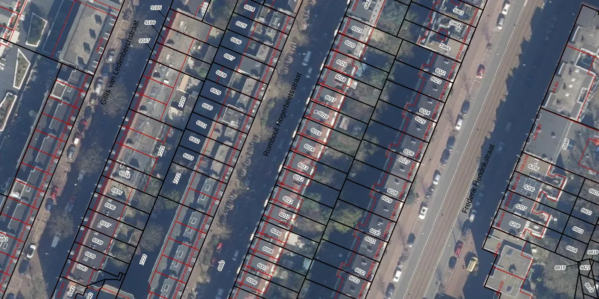 Het perceel waarop het adres ligt is ASD13-Q-6014. De afkorting 'ASD13' staat voor kadastrale gemeente Amsterdam. Het perceel is kleiner dan gemiddeld in Amsterdam. Het perceel is 127 m² groot, terwijl het gemiddelde ligt op 393,94 m². De grootste perceeloppervlakte in de kadastrale gemeente is 6,2 ha. De kleinste oppervlakte bedraagt 1 m². Er zijn 4 adressen aanwezig op het perceel. In de Basisregistratie Kadaster (BRK) werden de grenzen van het perceel geregistreerd op 23-01-2007.