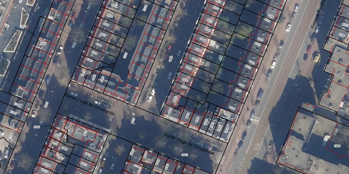Het perceel waarop het adres ligt is ASD13-Q-6004. De afkorting 'ASD13' staat voor kadastrale gemeente Amsterdam. Het perceel is kleiner dan gemiddeld in Amsterdam. Het perceel is 132 m² groot, terwijl het gemiddelde ligt op 394,07 m². Het grootste perceel in de kadastrale gemeente is 6,2 ha. Het kleinste perceel heeft een oppervlakte van 1 m². Op het perceel zijn 4 adressen aanwezig. De huidige grenzen van het perceel zijn digitaal in de Basisregistratie Kadaster (BRK) geregistreerd op 23-01-2007.