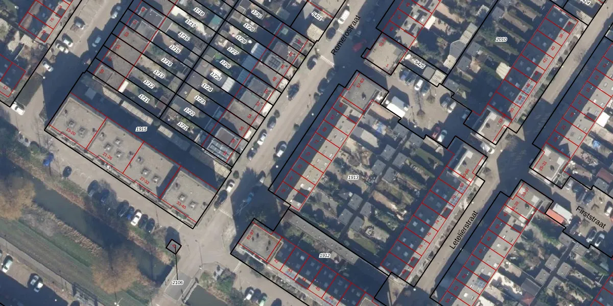 Het perceel waarop Romerostraat 73 staat heeft een oppervlakte van 2657 m². Dit is een zeer groot perceel. De perceeloppervlakte wordt geregistreerd door het Kadaster. Gedetailleerde informatie over de maten van dit perceel kunt u vinden in het rapport Kadastrale kaart met maatvoering van Romerostraat 73.