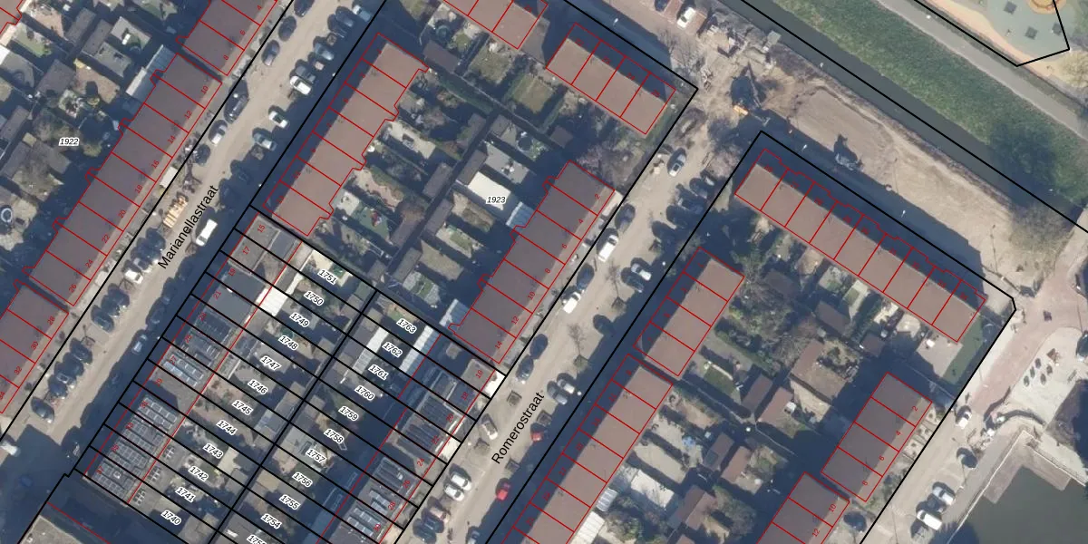 Het perceel waarop Romerostraat 8 staat heeft een oppervlakte van 3603 m². Dit is een zeer groot perceel. De perceeloppervlakte wordt geregistreerd door het Kadaster. Gedetailleerde informatie over de maten van dit perceel kunt u vinden in het rapport Kadastrale kaart met maatvoering van Romerostraat 8.