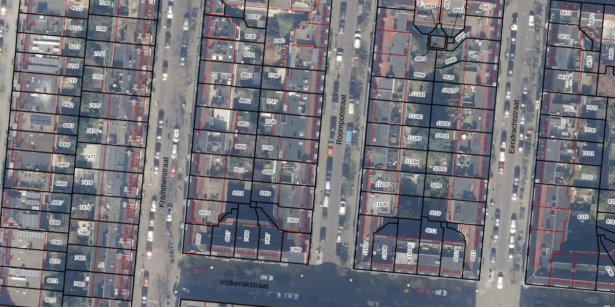 Het perceel waarop Roompotstraat 14-H staat heeft een oppervlakte van 155 m². Dit is een middelgroot perceel. De perceeloppervlakte wordt geregistreerd door het Kadaster. Gedetailleerde informatie over de maten van dit perceel kunt u vinden in het rapport Kadastrale kaart met maatvoering van Roompotstraat 14-H.