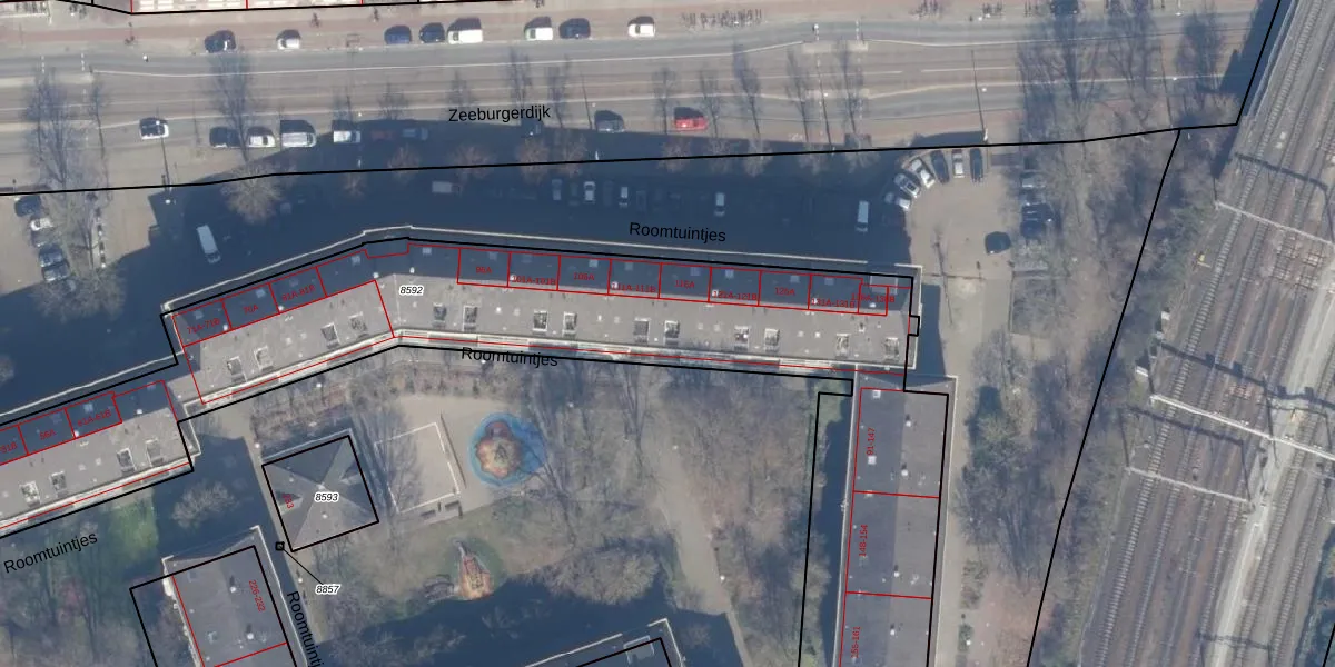 Roomtuintjes 117 is gelegen op kadastraal perceel ASD15S8592. Deze kadastrale aanduiding is uniek en wordt gebruikt door het Kadaster om eigendomsrechten en andere zakelijke rechten vast te leggen. Het perceel maakt onderdeel uit van de kadastrale gemeente Amsterdam.