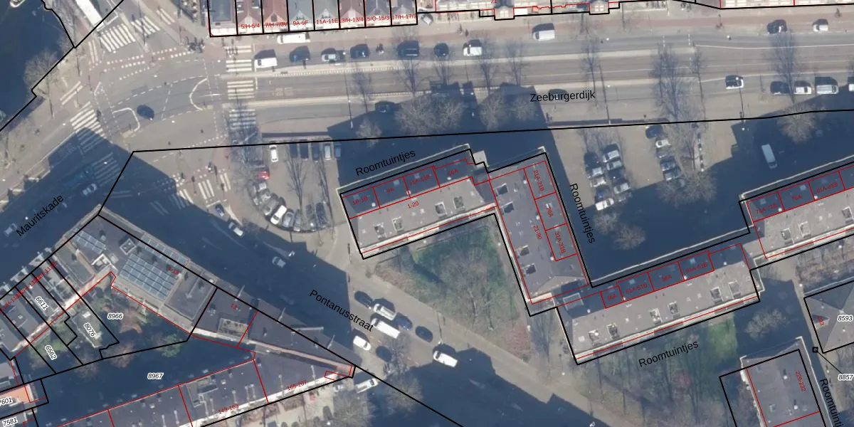 Roomtuintjes 12 is gelegen op kadastraal perceel ASD15S8592. Deze kadastrale aanduiding is uniek en wordt gebruikt door het Kadaster om eigendomsrechten en andere zakelijke rechten vast te leggen. Het perceel maakt onderdeel uit van de kadastrale gemeente Amsterdam.