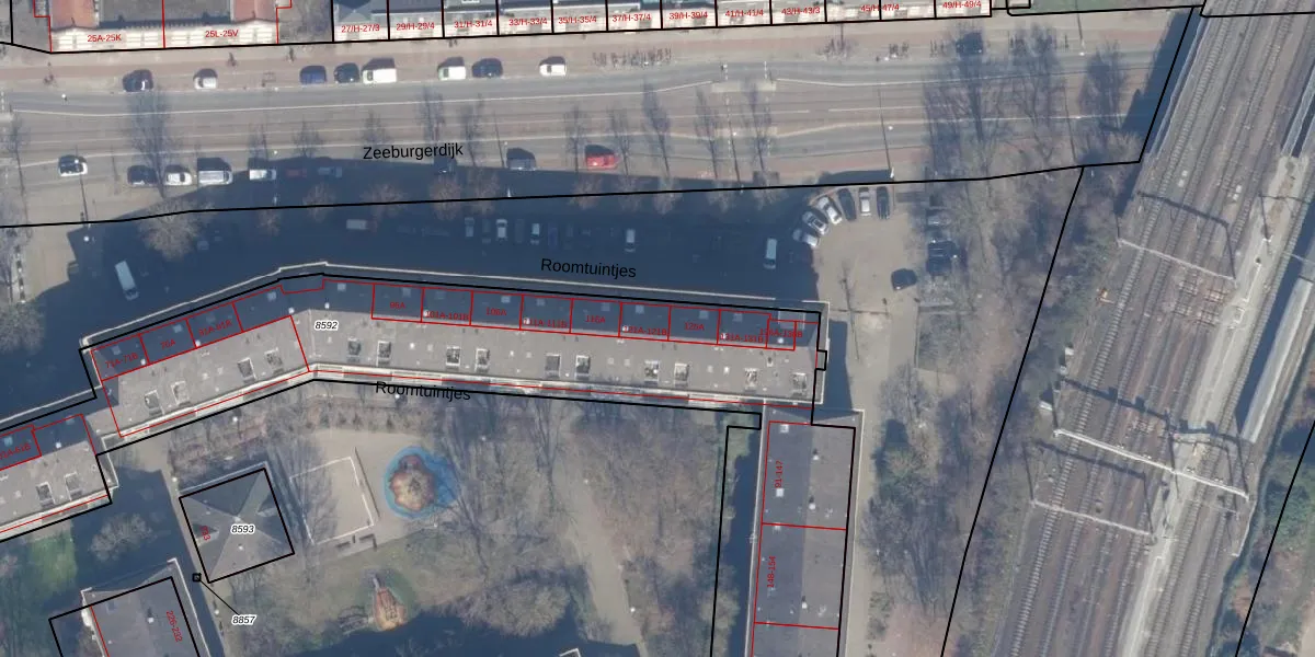 Roomtuintjes 121-B is gelegen op kadastraal perceel ASD15S8592. Deze kadastrale aanduiding is uniek en wordt gebruikt door het Kadaster om eigendomsrechten en andere zakelijke rechten vast te leggen. Het perceel maakt onderdeel uit van de kadastrale gemeente Amsterdam.