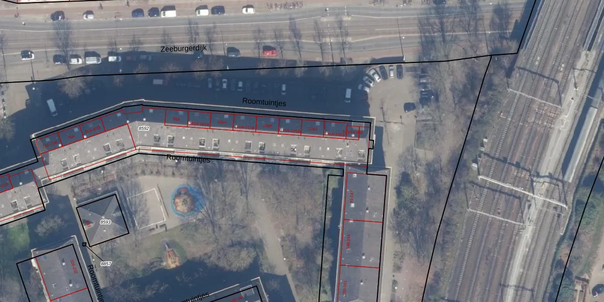Roomtuintjes 127 is gelegen op kadastraal perceel ASD15S8592. Deze kadastrale aanduiding is uniek en wordt gebruikt door het Kadaster om eigendomsrechten en andere zakelijke rechten vast te leggen. Het perceel maakt onderdeel uit van de kadastrale gemeente Amsterdam.