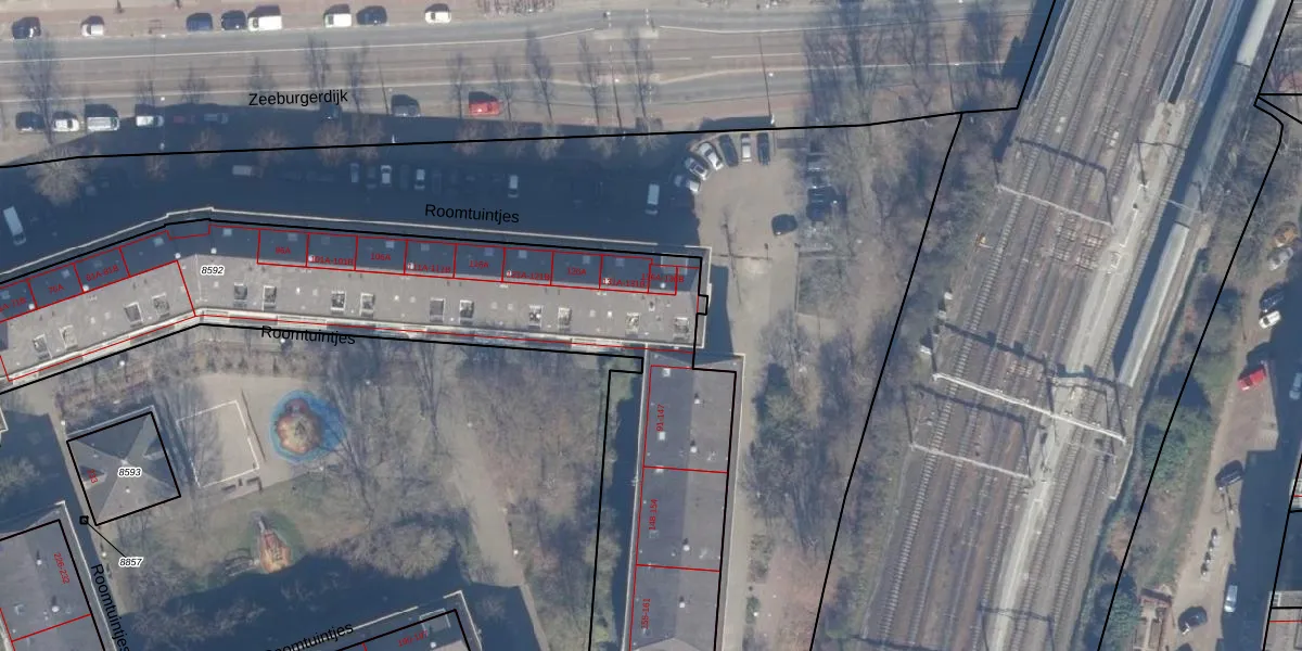 Roomtuintjes 138 is gelegen op kadastraal perceel ASD15S8592. Deze kadastrale aanduiding is uniek en wordt gebruikt door het Kadaster om eigendomsrechten en andere zakelijke rechten vast te leggen. Het perceel maakt onderdeel uit van de kadastrale gemeente Amsterdam.
