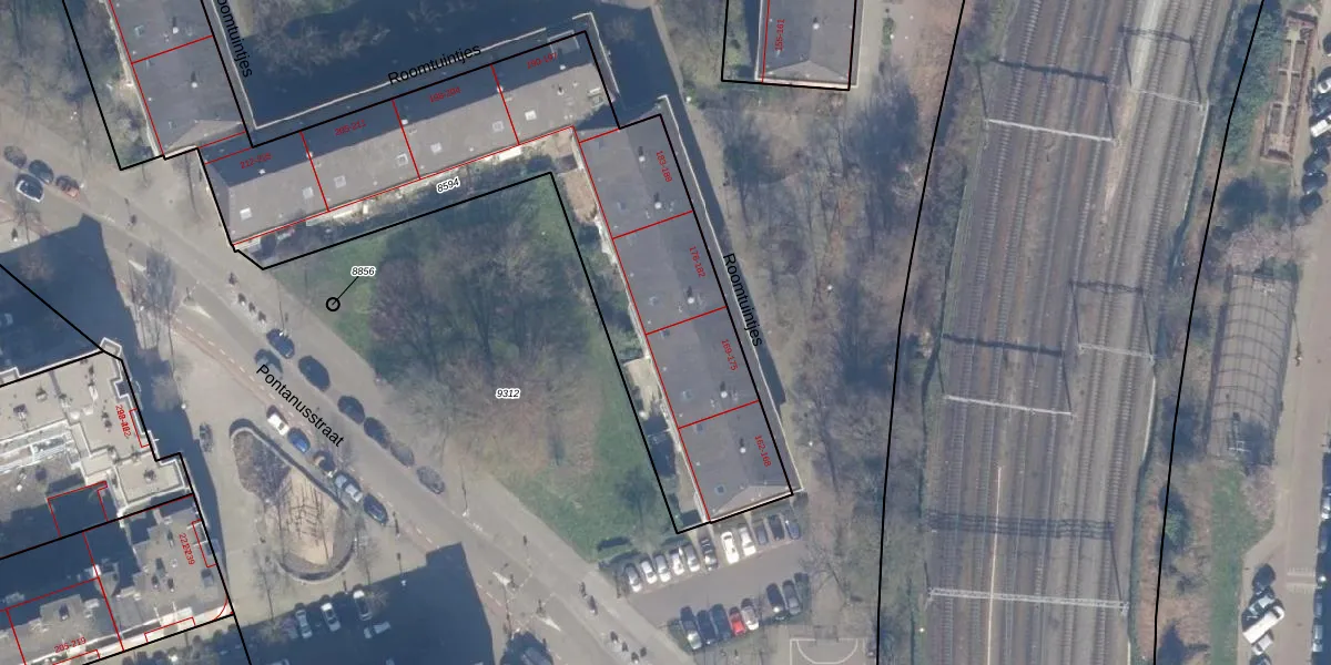 Roomtuintjes 175 is gelegen op kadastraal perceel ASD15S8594. Deze kadastrale aanduiding is uniek en wordt gebruikt door het Kadaster om eigendomsrechten en andere zakelijke rechten vast te leggen. Het perceel maakt onderdeel uit van de kadastrale gemeente Amsterdam.