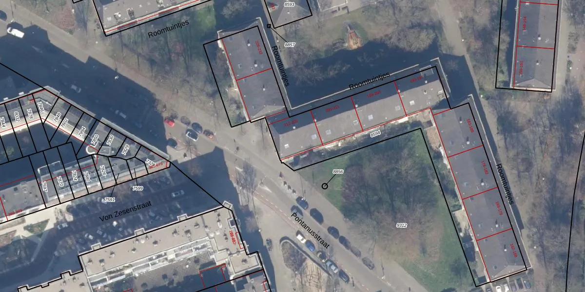 Roomtuintjes 217 is gelegen op kadastraal perceel ASD15S8594. Deze kadastrale aanduiding is uniek en wordt gebruikt door het Kadaster om eigendomsrechten en andere zakelijke rechten vast te leggen. Het perceel maakt onderdeel uit van de kadastrale gemeente Amsterdam.