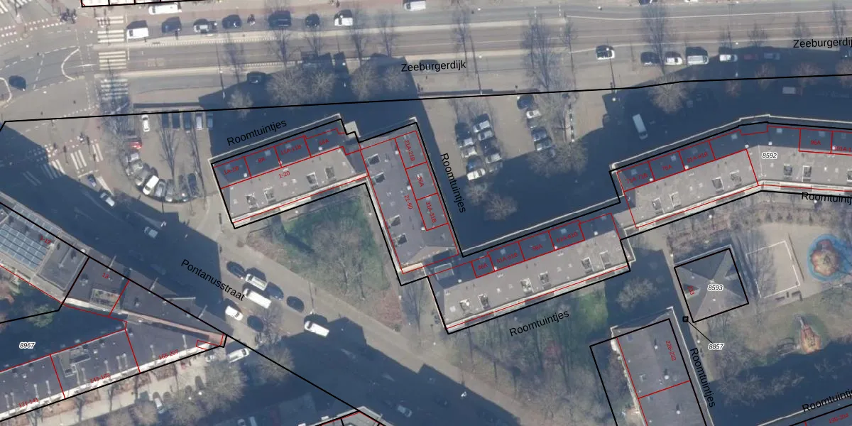 Roomtuintjes 31-B is gelegen op kadastraal perceel ASD15S8592. Deze kadastrale aanduiding is uniek en wordt gebruikt door het Kadaster om eigendomsrechten en andere zakelijke rechten vast te leggen. Het perceel maakt onderdeel uit van de kadastrale gemeente Amsterdam.