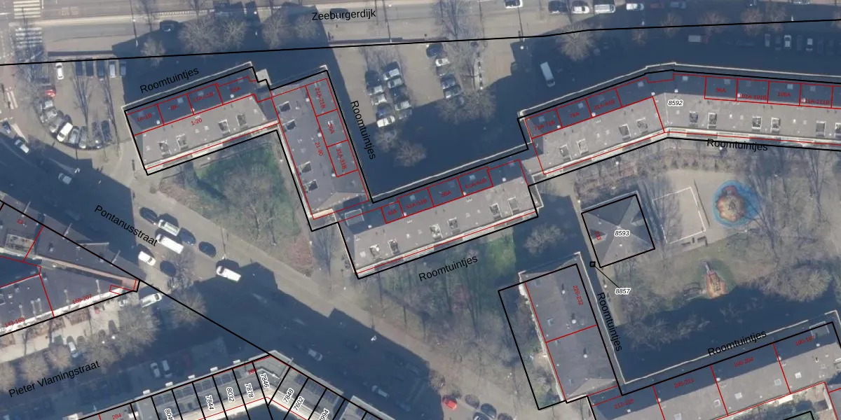 Roomtuintjes 51-B is gelegen op kadastraal perceel ASD15S8592. Deze kadastrale aanduiding is uniek en wordt gebruikt door het Kadaster om eigendomsrechten en andere zakelijke rechten vast te leggen. Het perceel maakt onderdeel uit van de kadastrale gemeente Amsterdam.