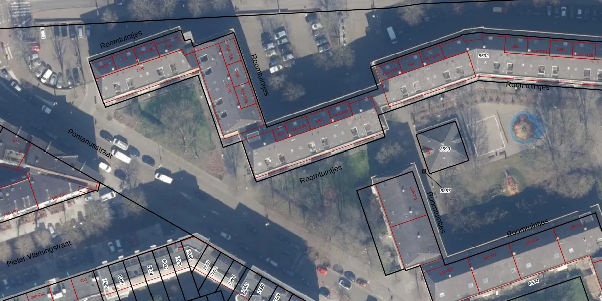 Roomtuintjes 52 is gelegen op kadastraal perceel ASD15S8592. Deze kadastrale aanduiding is uniek en wordt gebruikt door het Kadaster om eigendomsrechten en andere zakelijke rechten vast te leggen. Het perceel maakt onderdeel uit van de kadastrale gemeente Amsterdam.