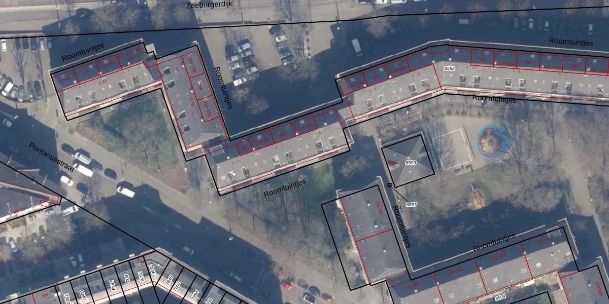 Roomtuintjes 61 is gelegen op kadastraal perceel ASD15S8592. Deze kadastrale aanduiding is uniek en wordt gebruikt door het Kadaster om eigendomsrechten en andere zakelijke rechten vast te leggen. Het perceel maakt onderdeel uit van de kadastrale gemeente Amsterdam.