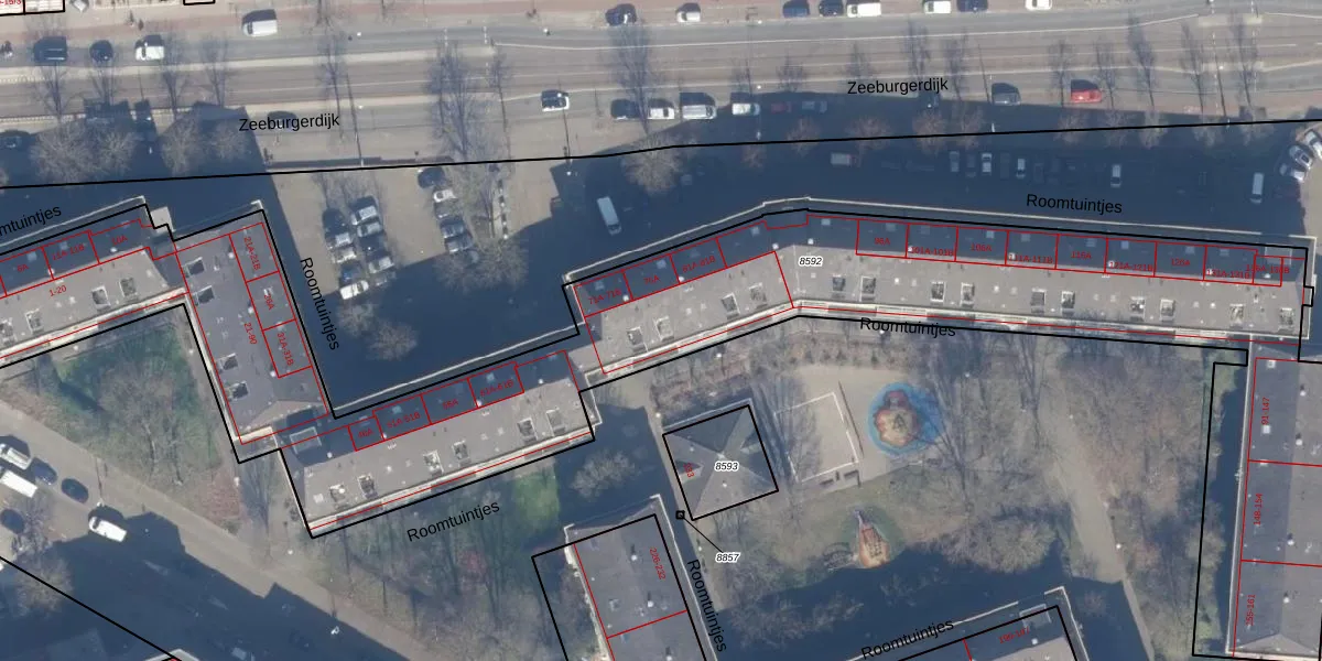 Roomtuintjes 76 is gelegen op kadastraal perceel ASD15S8592. Deze kadastrale aanduiding is uniek en wordt gebruikt door het Kadaster om eigendomsrechten en andere zakelijke rechten vast te leggen. Het perceel maakt onderdeel uit van de kadastrale gemeente Amsterdam.