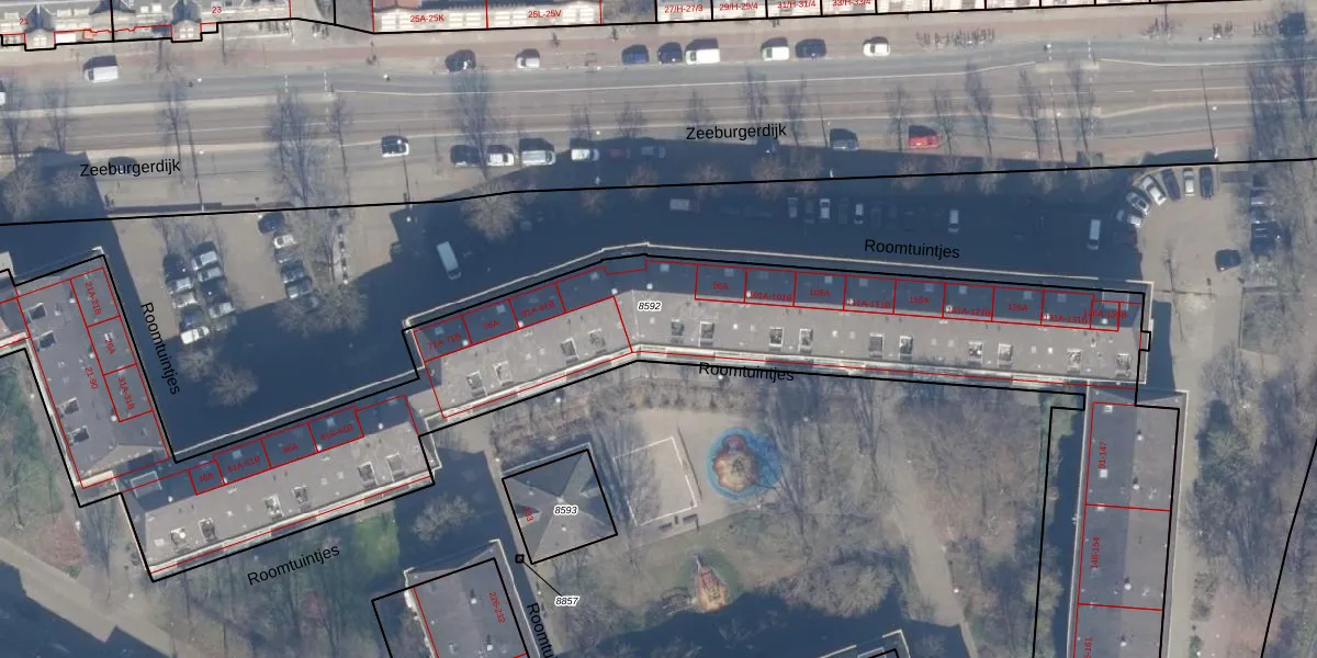 Roomtuintjes 91 is gelegen op kadastraal perceel ASD15S8592. Deze kadastrale aanduiding is uniek en wordt gebruikt door het Kadaster om eigendomsrechten en andere zakelijke rechten vast te leggen. Het perceel maakt onderdeel uit van de kadastrale gemeente Amsterdam.