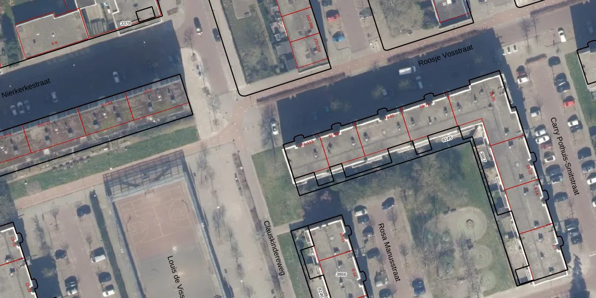 Het perceel waarop Roosje Vosstraat 113 staat heeft een oppervlakte van 1984 m². Dit is een zeer groot perceel. De perceeloppervlakte wordt geregistreerd door het Kadaster. Gedetailleerde informatie over de maten van dit perceel kunt u vinden in het rapport Kadastrale kaart met maatvoering van Roosje Vosstraat 113.