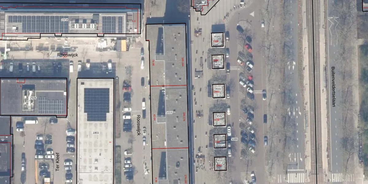 Het perceel waarop Rooswijck 68 staat heeft een oppervlakte van 2044 m². Dit is een zeer groot perceel. De perceeloppervlakte wordt geregistreerd door het Kadaster. Gedetailleerde informatie over de maten van dit perceel kunt u vinden in het rapport Kadastrale kaart met maatvoering van Rooswijck 68.