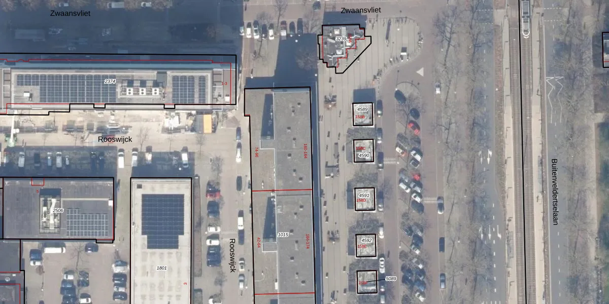 Het perceel waarop Rooswijck 72 staat heeft een oppervlakte van 2044 m². Dit is een zeer groot perceel. De perceeloppervlakte wordt geregistreerd door het Kadaster. Gedetailleerde informatie over de maten van dit perceel kunt u vinden in het rapport Kadastrale kaart met maatvoering van Rooswijck 72.