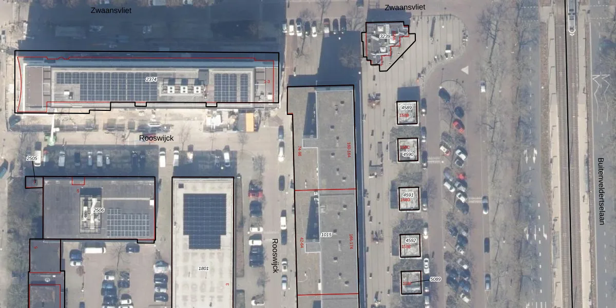 Het perceel waarop Rooswijck 94 staat heeft een oppervlakte van 2044 m². Dit is een zeer groot perceel. De perceeloppervlakte wordt geregistreerd door het Kadaster. Gedetailleerde informatie over de maten van dit perceel kunt u vinden in het rapport Kadastrale kaart met maatvoering van Rooswijck 94.