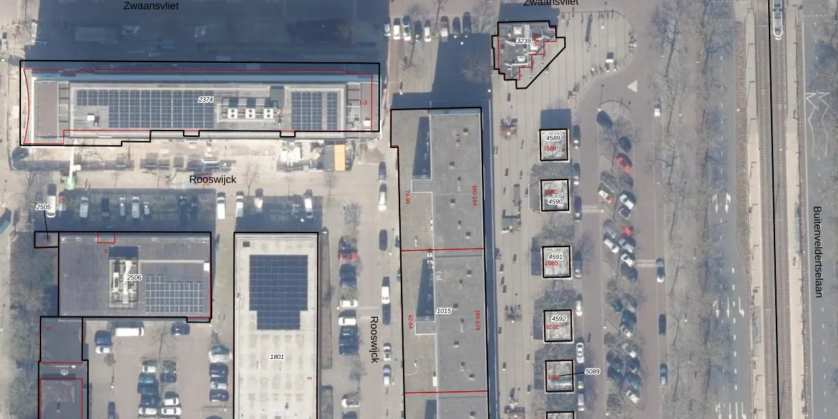 Het perceel waarop Rooswijck 96 staat heeft een oppervlakte van 2044 m². Dit is een zeer groot perceel. De perceeloppervlakte wordt geregistreerd door het Kadaster. Gedetailleerde informatie over de maten van dit perceel kunt u vinden in het rapport Kadastrale kaart met maatvoering van Rooswijck 96.