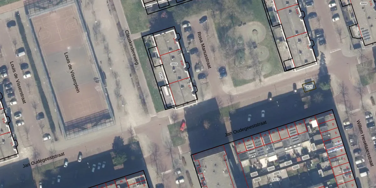 Het perceel waarop Rosa Manusstraat 2 staat heeft een oppervlakte van 608 m². Dit is een groot perceel. De perceeloppervlakte wordt geregistreerd door het Kadaster. Gedetailleerde informatie over de maten van dit perceel kunt u vinden in het rapport Kadastrale kaart met maatvoering van Rosa Manusstraat 2.