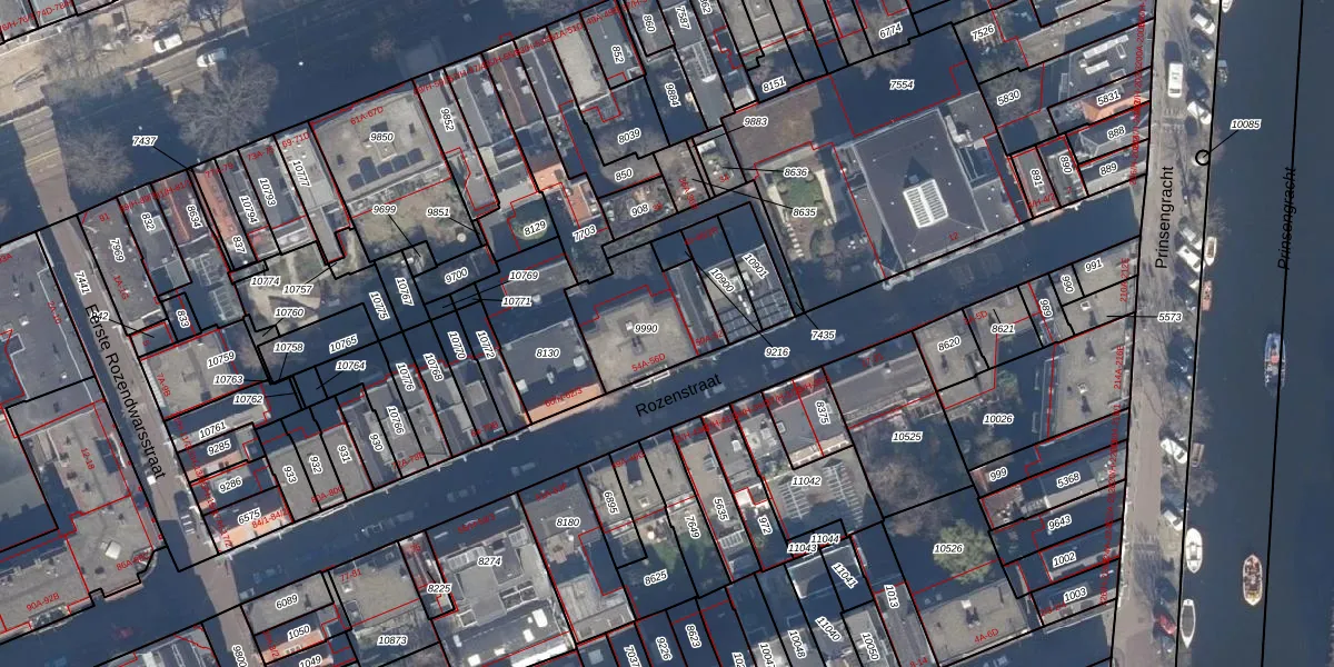 Rozenstraat 54-A is gelegen op kadastraal perceel ASD03E9990. Deze kadastrale aanduiding is uniek en wordt gebruikt door het Kadaster om eigendomsrechten en andere zakelijke rechten vast te leggen. Het perceel maakt onderdeel uit van de kadastrale gemeente Amsterdam.