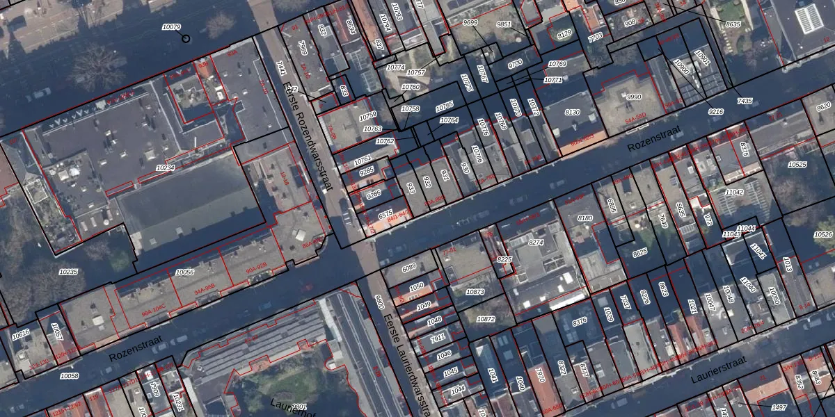 Rozenstraat 80-B is gelegen op kadastraal perceel ASD03E933. Deze kadastrale aanduiding is uniek en wordt gebruikt door het Kadaster om eigendomsrechten en andere zakelijke rechten vast te leggen. Het perceel maakt onderdeel uit van de kadastrale gemeente Amsterdam.