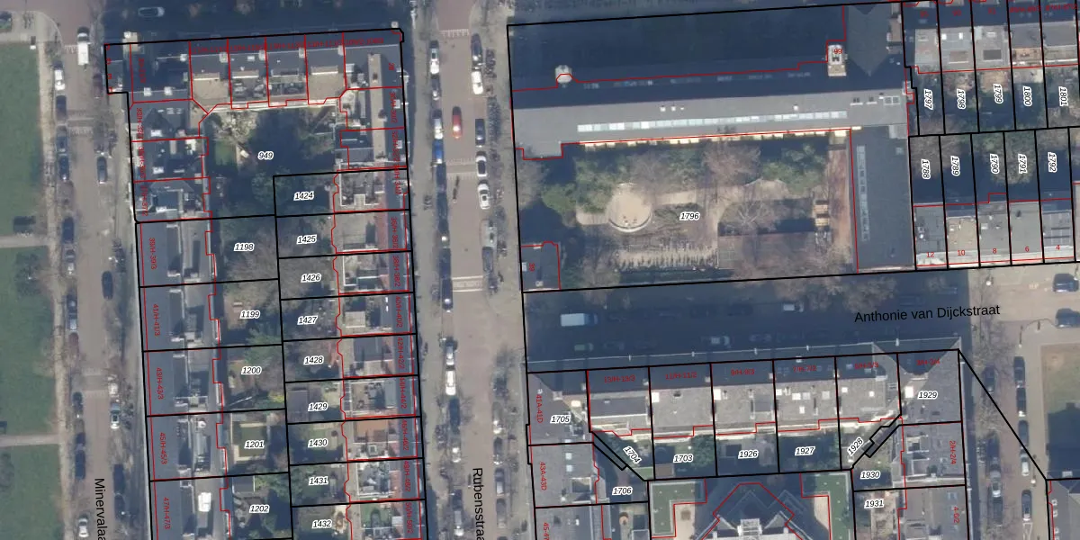 Het perceel waarop Rubensstraat 39 staat heeft een oppervlakte van 3664 m². Dit is een zeer groot perceel. De perceeloppervlakte wordt geregistreerd door het Kadaster. Gedetailleerde informatie over de maten van dit perceel kunt u vinden in het rapport Kadastrale kaart met maatvoering van Rubensstraat 39.