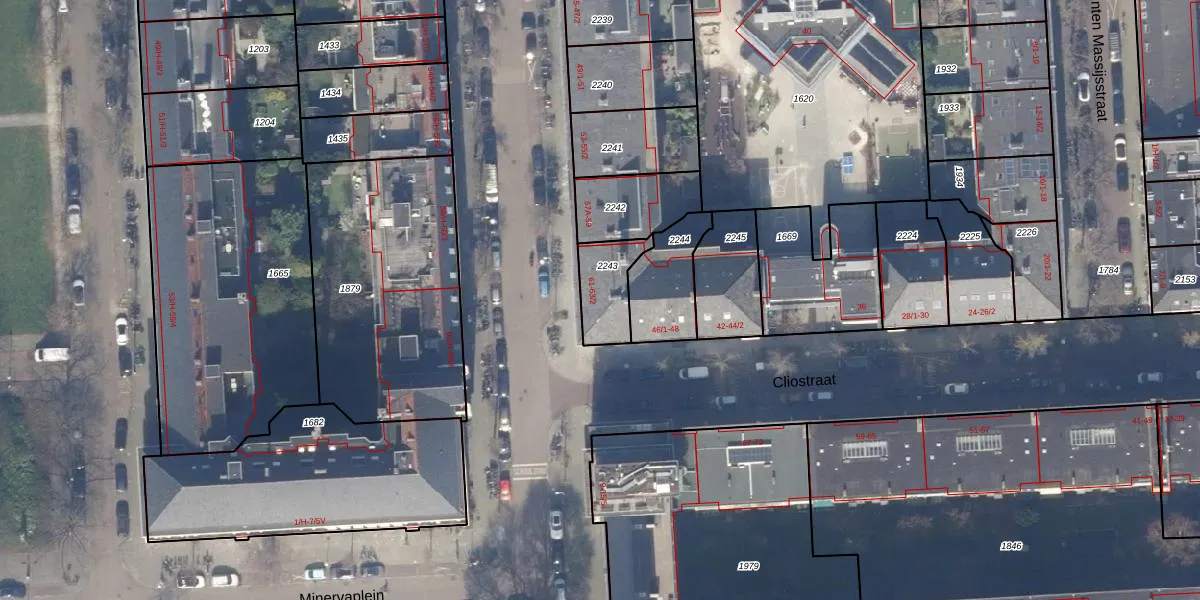 Het perceel waarop het adres ligt is ASD22-Z-2243. De afkorting 'ASD22' staat voor kadastrale gemeente Amsterdam. De gemiddelde perceelgrootte in Amsterdam is 654,25 m². Dit perceel is kleiner: de perceeloppervlakte bedraagt 150 m². Het grootste perceel in de kadastrale gemeente is 18,1 ha. Het kleinste perceel heeft een oppervlakte van 0 m². Op het perceel zijn 12 adressen aanwezig. In de Basisregistratie Kadaster (BRK) werden de grenzen van het perceel geregistreerd op 19-03-2012.