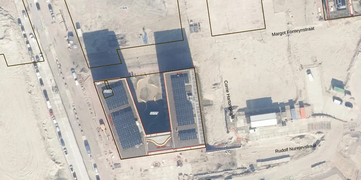 Het adres ligt op het perceel ASD07-K-11727, dat zich in de kadastrale gemeente Amsterdam bevindt. Het perceel is 2290 m² groot. Dat is kleiner dan de gemiddelde perceeloppervlakte in Amsterdam, dat op 2997,17 m² ligt. Het grootste perceel in de kadastrale gemeente is 56,2 ha. Het kleinste perceel heeft een oppervlakte van 0 m². Op het perceel liggen in totaal 248 adressen. In de Basisregistratie Kadaster (BRK) werden de grenzen van het perceel geregistreerd op 21-12-2022.