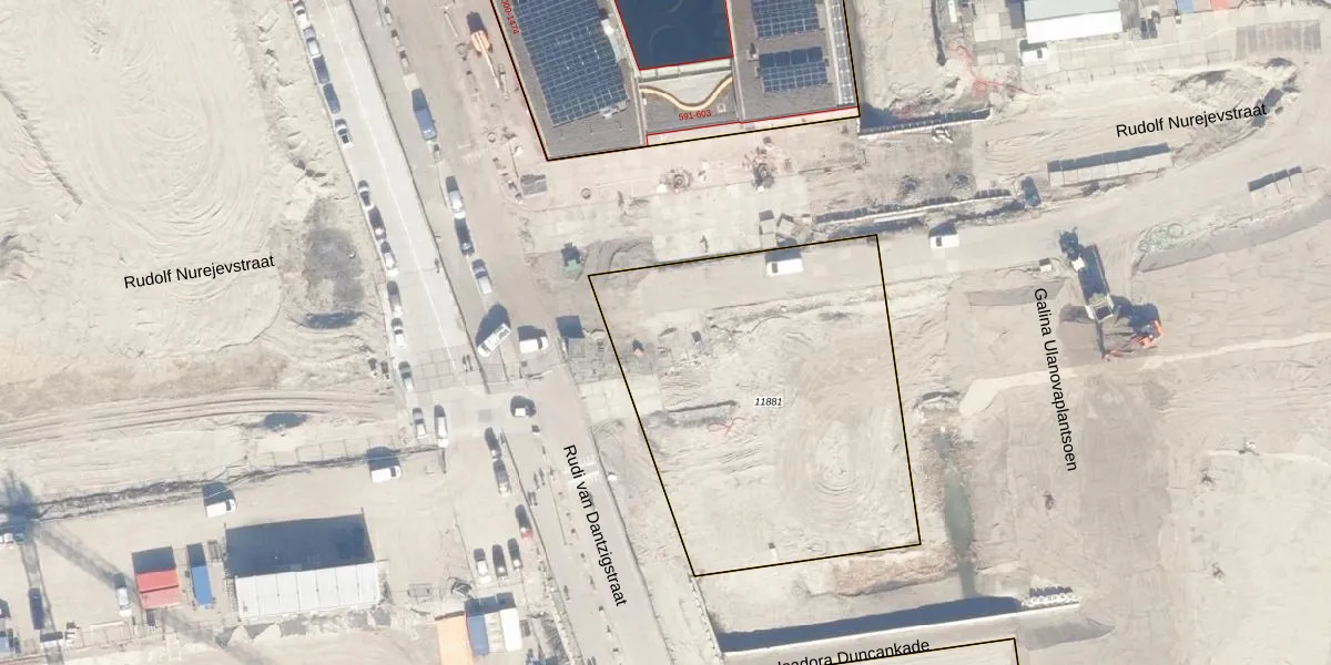 Het adres is gelegen op perceel 11881 in de sectie K en de kadastrale gemeente Amsterdam. De kadastrale aanduiding is aldus ASD07-K-11881. Het perceel is kleiner dan gemiddeld in Amsterdam. Het perceel is 1833 m² groot, terwijl het gemiddelde ligt op 2997,17 m². Het kleinste perceel in de kadastrale gemeente is 0 m² groot. De grootste perceeloppervlakte is 56,2 ha. Op het perceel zijn 89 adressen aanwezig. De huidige grenzen van het perceel zijn digitaal in de Basisregistratie Kadaster (BRK) geregistreerd op 03-10-2024.