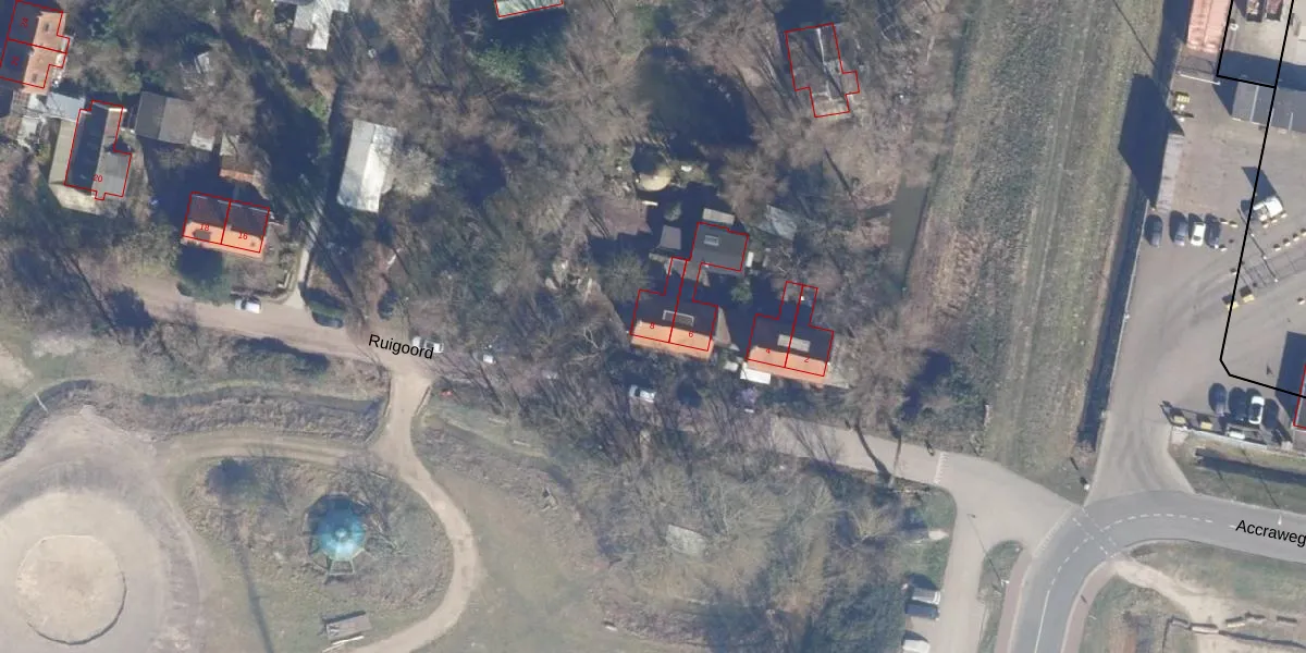 Het perceel waarop Ruigoord 8 staat heeft een oppervlakte van 66,6 ha. Dit is een zeer groot perceel. De perceeloppervlakte wordt geregistreerd door het Kadaster. Gedetailleerde informatie over de maten van dit perceel kunt u vinden in het rapport Kadastrale kaart met maatvoering van Ruigoord 8.