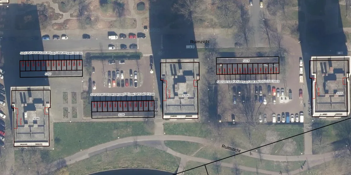 Het perceel waarop Ruimzicht 180 staat heeft een oppervlakte van 660 m². Dit is een groot perceel. De perceeloppervlakte wordt geregistreerd door het Kadaster. Gedetailleerde informatie over de maten van dit perceel kunt u vinden in het rapport Kadastrale kaart met maatvoering van Ruimzicht 180.