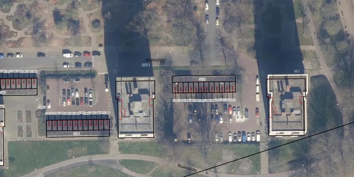 Het perceel waarop Ruimzicht 245 staat heeft een oppervlakte van 19 m². Dit is een klein perceel. De perceeloppervlakte wordt geregistreerd door het Kadaster. Gedetailleerde informatie over de maten van dit perceel kunt u vinden in het rapport Kadastrale kaart met maatvoering van Ruimzicht 245.