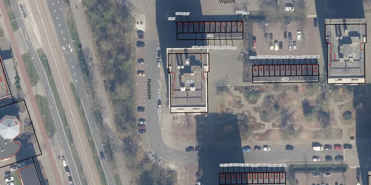 Het perceel waarop Ruimzicht 63 staat heeft een oppervlakte van 660 m². Dit is een groot perceel. De perceeloppervlakte wordt geregistreerd door het Kadaster. Gedetailleerde informatie over de maten van dit perceel kunt u vinden in het rapport Kadastrale kaart met maatvoering van Ruimzicht 63.