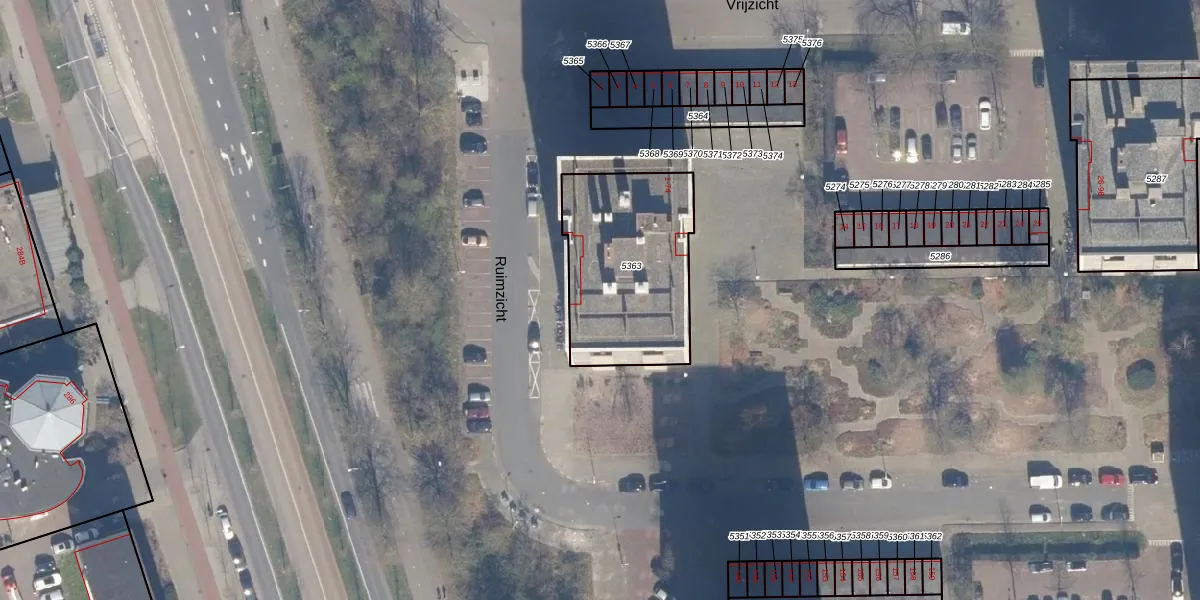 Het perceel waarop Ruimzicht 66 staat heeft een oppervlakte van 660 m². Dit is een groot perceel. De perceeloppervlakte wordt geregistreerd door het Kadaster. Gedetailleerde informatie over de maten van dit perceel kunt u vinden in het rapport Kadastrale kaart met maatvoering van Ruimzicht 66.