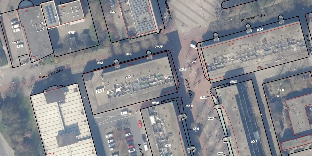 Ruiseveenpad 44 is gelegen op kadastraal perceel WPK02L1336. Deze kadastrale aanduiding is uniek en wordt gebruikt door het Kadaster om eigendomsrechten en andere zakelijke rechten vast te leggen. Het perceel maakt onderdeel uit van de kadastrale gemeente Weesperkarspel.