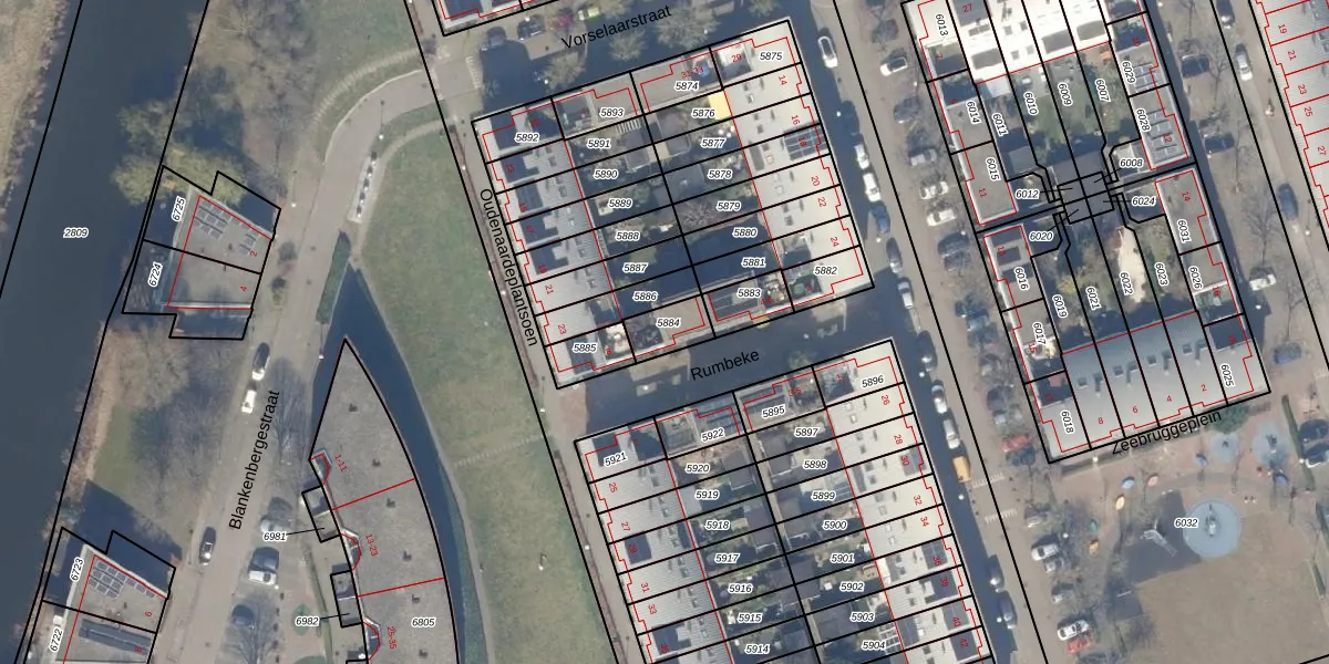 Gebruik de zoekbalk of klik op een perceel voor informatie over de adressen binnen dit perceel.