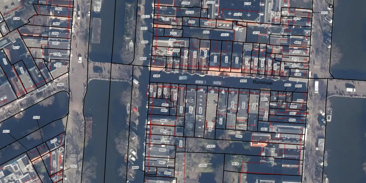 Runstraat 25-H is gelegen op kadastraal perceel ASD06I8844. Deze kadastrale aanduiding is uniek en wordt gebruikt door het Kadaster om eigendomsrechten en andere zakelijke rechten vast te leggen. Het perceel maakt onderdeel uit van de kadastrale gemeente Amsterdam.