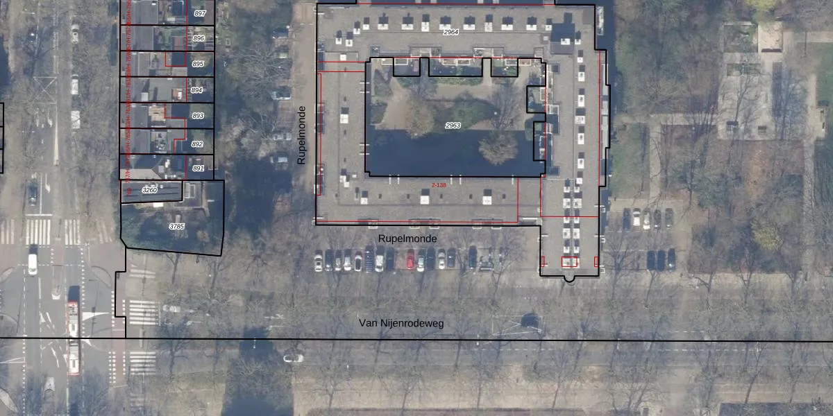 Het perceel waarop Rupelmonde 126 staat heeft een oppervlakte van 2908 m². Dit is een zeer groot perceel. De perceeloppervlakte wordt geregistreerd door het Kadaster. Gedetailleerde informatie over de maten van dit perceel kunt u vinden in het rapport Kadastrale kaart met maatvoering van Rupelmonde 126.