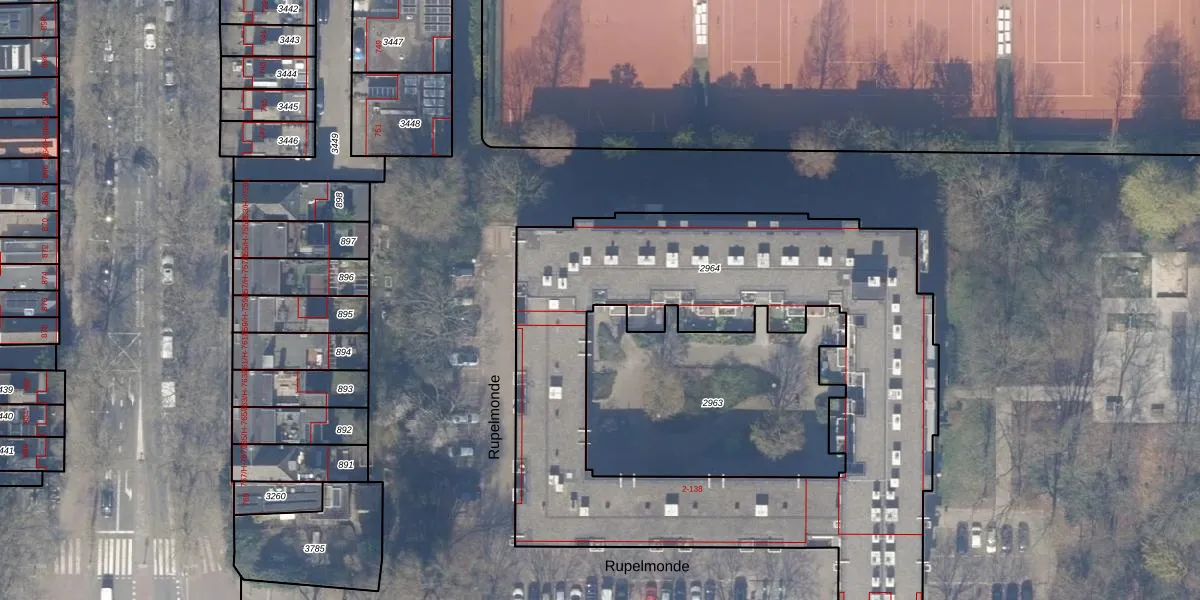 Het perceel waarop Rupelmonde 25 staat heeft een oppervlakte van 2908 m². Dit is een zeer groot perceel. De perceeloppervlakte wordt geregistreerd door het Kadaster. Gedetailleerde informatie over de maten van dit perceel kunt u vinden in het rapport Kadastrale kaart met maatvoering van Rupelmonde 25.