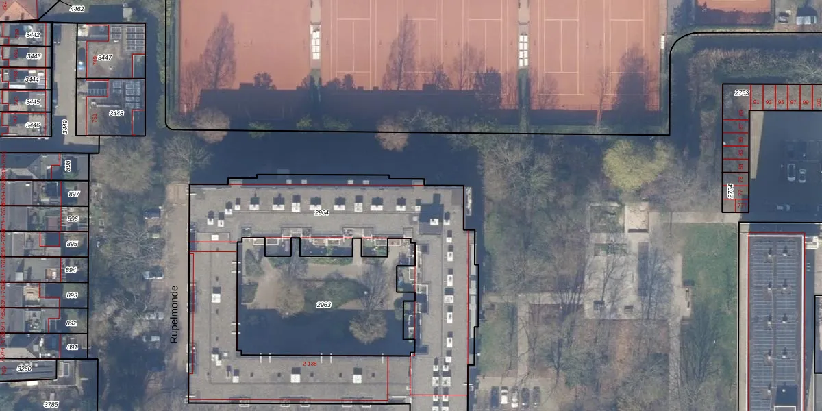 Het perceel waarop Rupelmonde 57 staat heeft een oppervlakte van 2908 m². Dit is een zeer groot perceel. De perceeloppervlakte wordt geregistreerd door het Kadaster. Gedetailleerde informatie over de maten van dit perceel kunt u vinden in het rapport Kadastrale kaart met maatvoering van Rupelmonde 57.