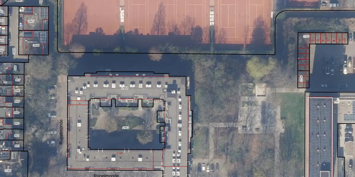 Het perceel waarop Rupelmonde 68 staat heeft een oppervlakte van 2908 m². Dit is een zeer groot perceel. De perceeloppervlakte wordt geregistreerd door het Kadaster. Gedetailleerde informatie over de maten van dit perceel kunt u vinden in het rapport Kadastrale kaart met maatvoering van Rupelmonde 68.
