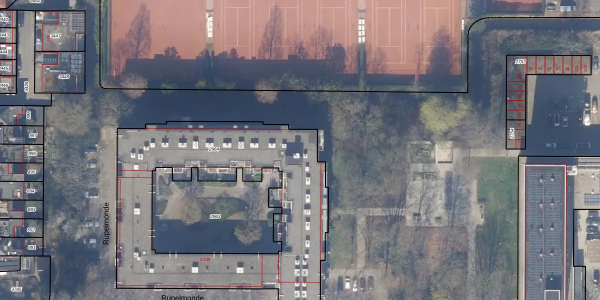 Het perceel waarop Rupelmonde 69 staat heeft een oppervlakte van 2908 m². Dit is een zeer groot perceel. De perceeloppervlakte wordt geregistreerd door het Kadaster. Gedetailleerde informatie over de maten van dit perceel kunt u vinden in het rapport Kadastrale kaart met maatvoering van Rupelmonde 69.