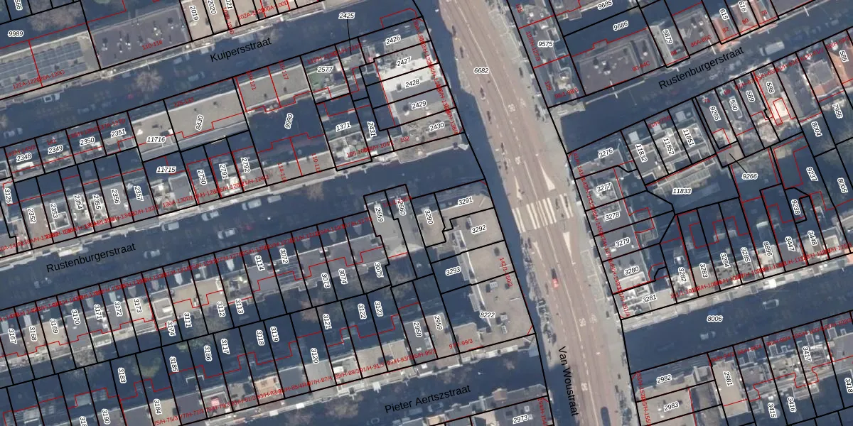 Het perceel waarop het adres ligt is ASD18-V-3290. De afkorting 'ASD18' staat voor kadastrale gemeente Amsterdam. Het perceel is kleiner dan gemiddeld in Amsterdam. Het perceel is 69 m² groot, terwijl het gemiddelde ligt op 559,23 m². Het grootste perceel in de kadastrale gemeente is 12,5 ha. Het kleinste perceel heeft een oppervlakte van 0 m². Er zijn 3 adressen aanwezig op het perceel. In de Basisregistratie Kadaster (BRK) werden de grenzen van het perceel geregistreerd op 09-08-2006.