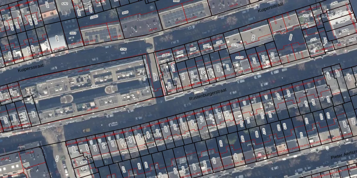 Rustenburgerstraat 140-B is gelegen op kadastraal perceel ASD18V3125. Deze kadastrale aanduiding is uniek en wordt gebruikt door het Kadaster om eigendomsrechten en andere zakelijke rechten vast te leggen. Het perceel maakt onderdeel uit van de kadastrale gemeente Amsterdam.