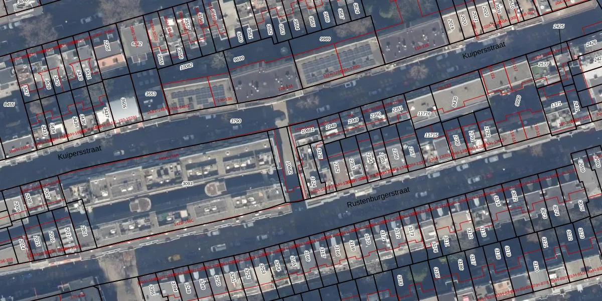 Het perceel waarop Rustenburgerstraat 140-C staat heeft een oppervlakte van 82 m². Dit is een klein perceel. De perceeloppervlakte wordt geregistreerd door het Kadaster. Gedetailleerde informatie over de maten van dit perceel kunt u vinden in het rapport Kadastrale kaart met maatvoering van Rustenburgerstraat 140-C.