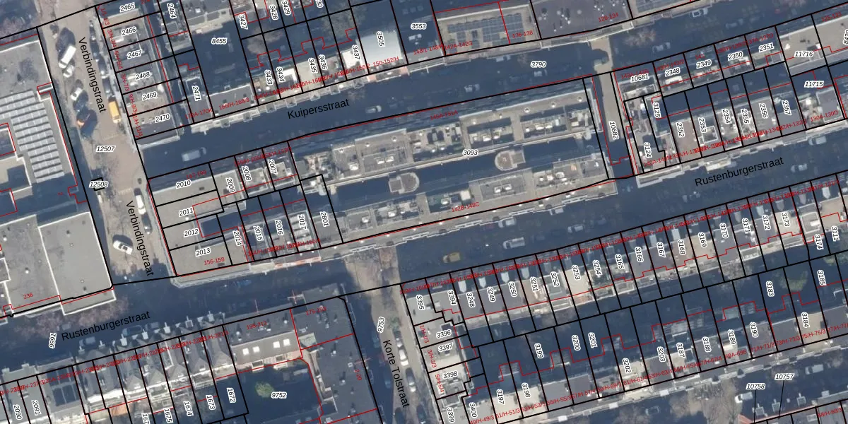 Het perceel waarop Rustenburgerstraat 142-B staat heeft een oppervlakte van 1753 m². Dit is een zeer groot perceel. De perceeloppervlakte wordt geregistreerd door het Kadaster. Gedetailleerde informatie over de maten van dit perceel kunt u vinden in het rapport Kadastrale kaart met maatvoering van Rustenburgerstraat 142-B.
