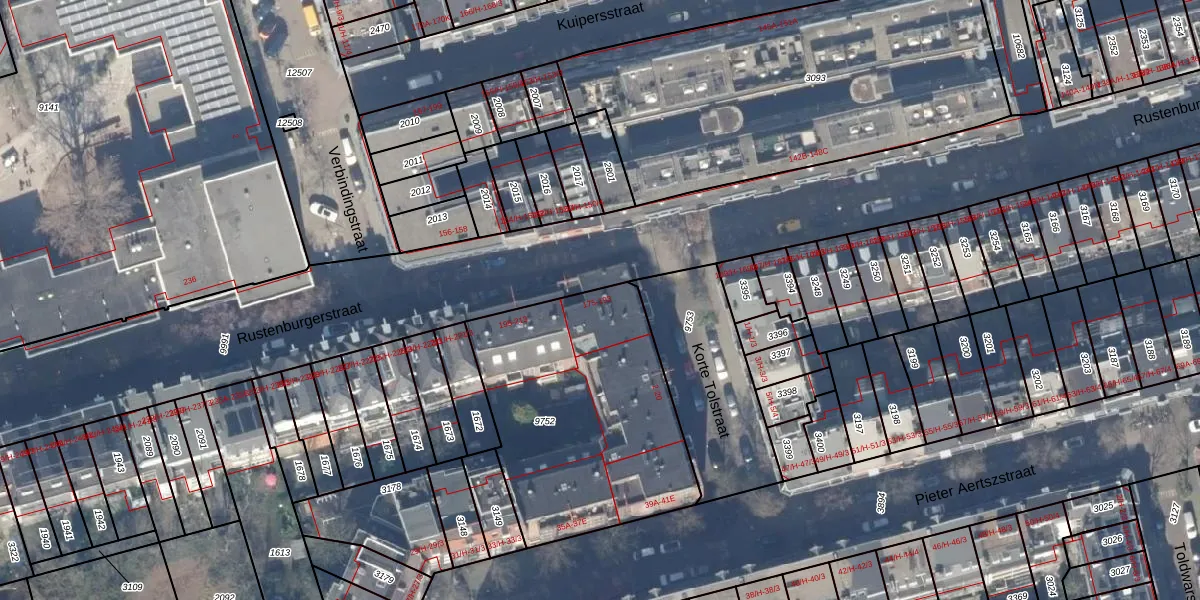 Rustenburgerstraat 185 is gelegen op kadastraal perceel ASD18V9752. Deze kadastrale aanduiding is uniek en wordt gebruikt door het Kadaster om eigendomsrechten en andere zakelijke rechten vast te leggen. Het perceel maakt onderdeel uit van de kadastrale gemeente Amsterdam.