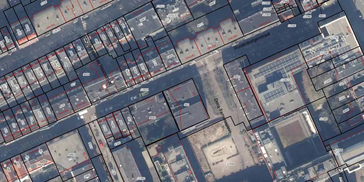 Rustenburgerstraat 23-B is gelegen op kadastraal perceel ASD18V562. Deze kadastrale aanduiding is uniek en wordt gebruikt door het Kadaster om eigendomsrechten en andere zakelijke rechten vast te leggen. Het perceel maakt onderdeel uit van de kadastrale gemeente Amsterdam.